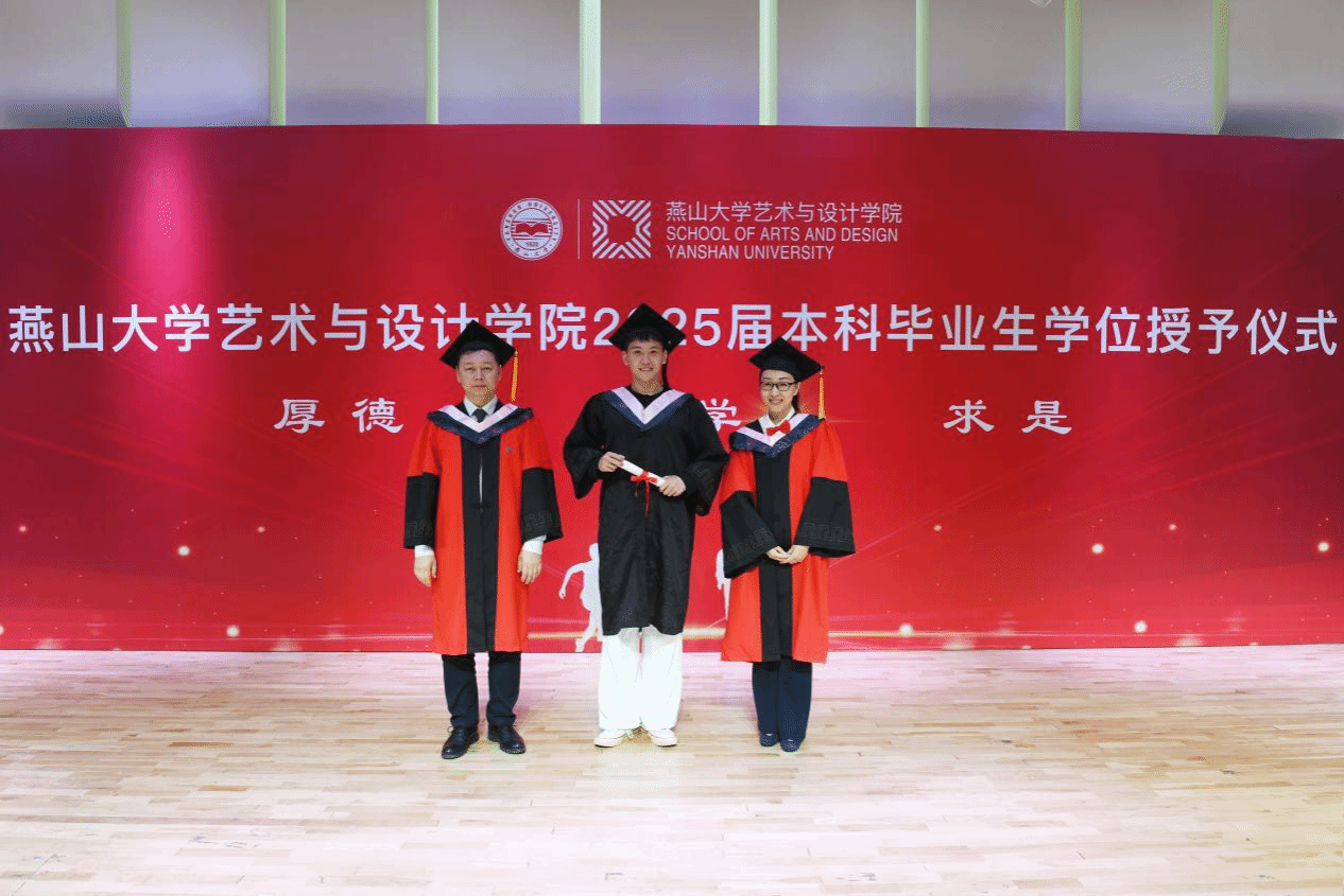 随后,在激昂的《大学生之歌》旋律中,学院院长赵琳及各系主任为每一位毕业生拨穗正冠并合影留念。毕业生们依次登台,向恩师鞠躬致谢,表达对学院培养的深深感激之情。