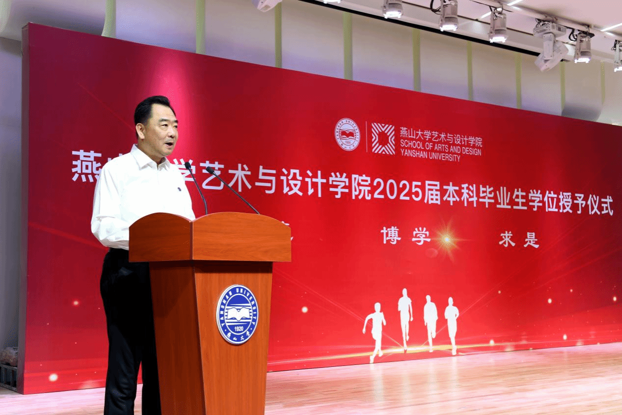 下午3点整,在雄壮的国歌声中,学位授予仪式正式拉开帷幕。学院党委书记张文超以《从艺院出发,向祖国报到》为题寄语毕业生。他首先代表学院向圆满完成学业的毕业生们致以最热烈的祝贺,向辛勤耕耘的教师们表达最诚挚的感谢。张文超与毕业生们共同回顾了大学四年的难忘时光,并特别向即将投身军旅、扎根基层、在各行业建功立业的毕业生们送上最真挚的祝福。