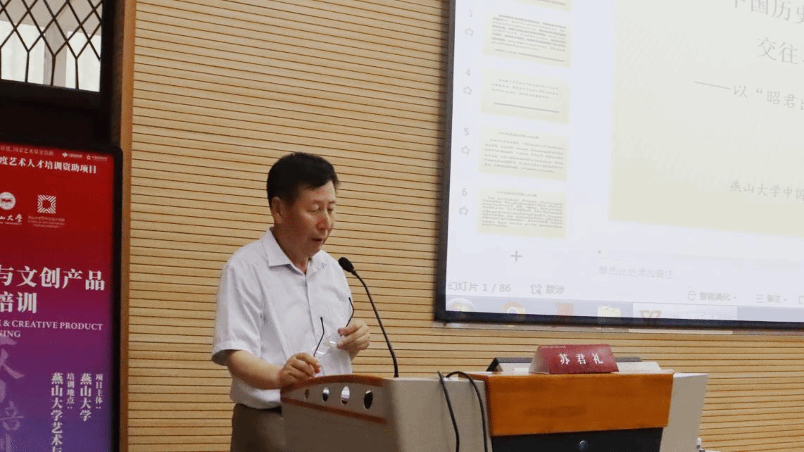 苏君礼教授带来一场主题为“中国历史上长城地区的民族交往、交流、交融”的精彩授课,详细阐述了长城沿线地区作为多民族交汇点的历史角色,探讨不同民族如何在长城地区进行贸易、文化交流和生活方式的互相影响。他通过具体的历史事件和生动的案例,揭示长城在促进民族融合、文化交流以及维护地区和平方面的重要作用。苏君礼教授的讲解帮助学员们认识到长城文化的多元性和包容性,理解其在历史上对于构建和谐民族关系的贡献。这些宝贵的历史经验和文化智慧,使学员们对长城文化有更加全面和深刻的理解,这将为他们在文创产品设计中融入长城元素提供灵感,帮助他们创造出既有深厚文化底蕴又具有时代感的作品。