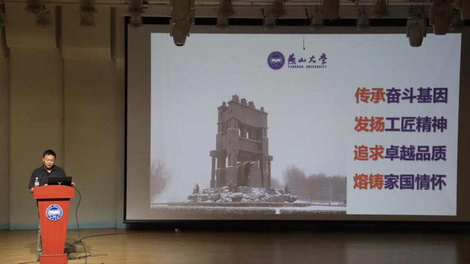 的发展脉络与鲜明特色,深入阐释了燕大人“厚德、博学、求是”的校训精神。并围绕学院机构设置、师资力量、学科建设、专业布局与人才培养体系,为同学们作了全景式介绍。最后他以一条凝聚艺术家爱心的“鱼”的创意设计为引,勉励大家拥抱专业、践行使命、锤炼品格。