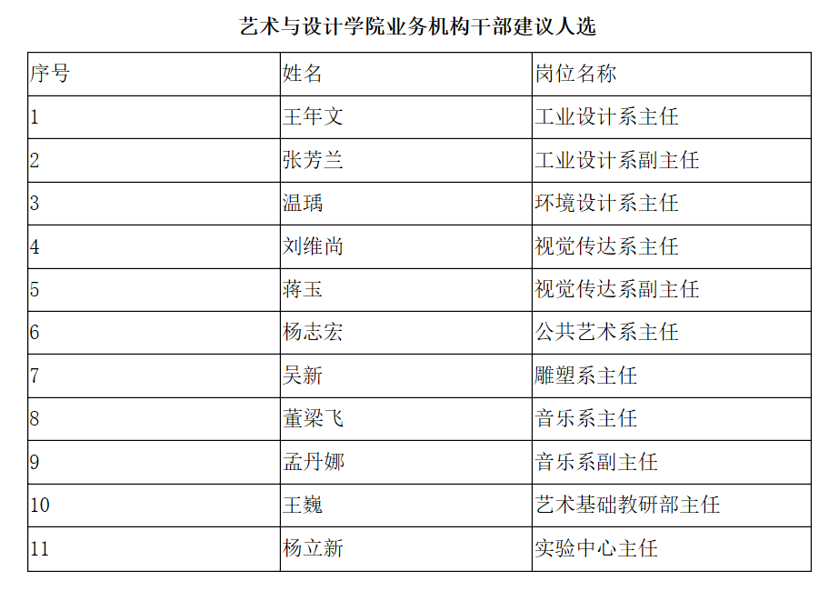 根据学校党委工作部署,依据《哔咔漫画 业务机构设置及干部聘任实施细则(试行)》、《哔咔漫画 业务机构设置及干部聘任实施方案》的相关要求,学院召开了院属业务机构干部民主推荐会,对院属7个系部候选人进行了民主推荐。经学院党委会研究决定,同意王年文等11名同志作为哔咔漫画 业务机构干部建议人选,现予以公示。公示期为:2020年4月17日—2020年4月21日,公示期内如有异议,请致电学院党委书记办公室,电话:8046508。